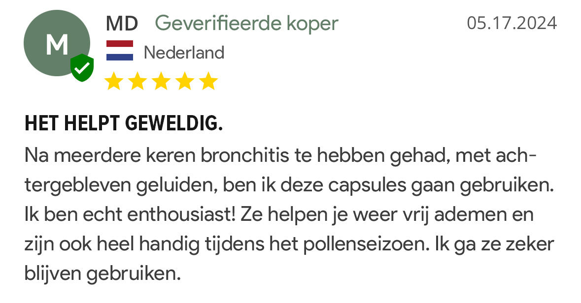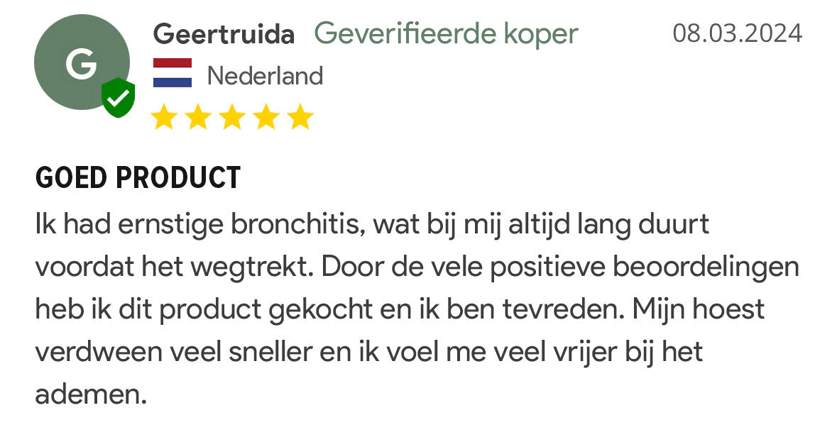 De hoest is volledig verdwenen en ik kan weer vrij ademen.